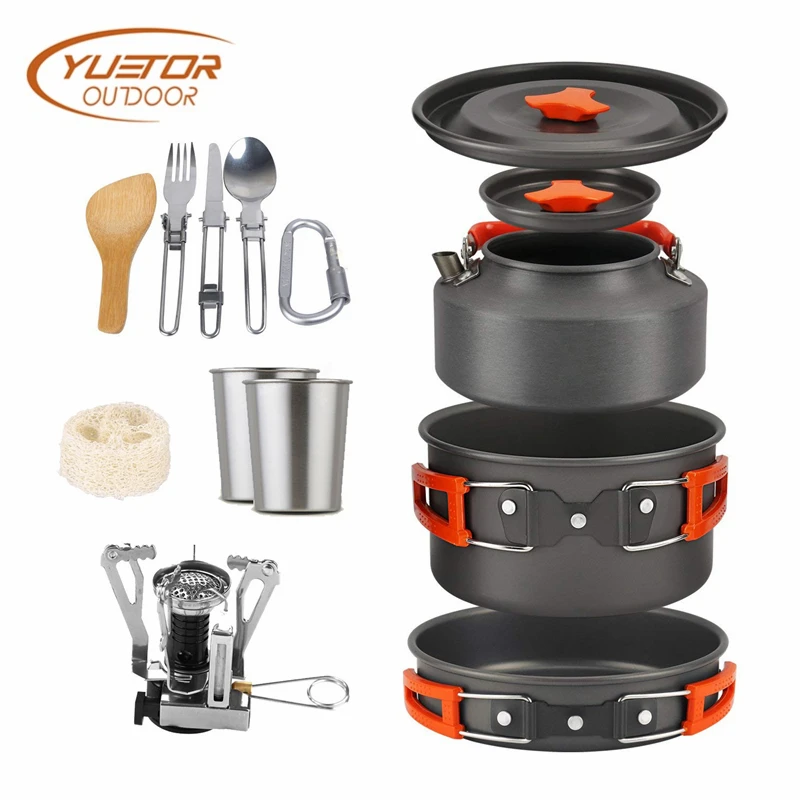 Big Deal YUETOR OUTDOOR 2-3 Persons 15pcs Camping Stove Cookware Set Portable Utensils Bowl Pot Spoon tablew